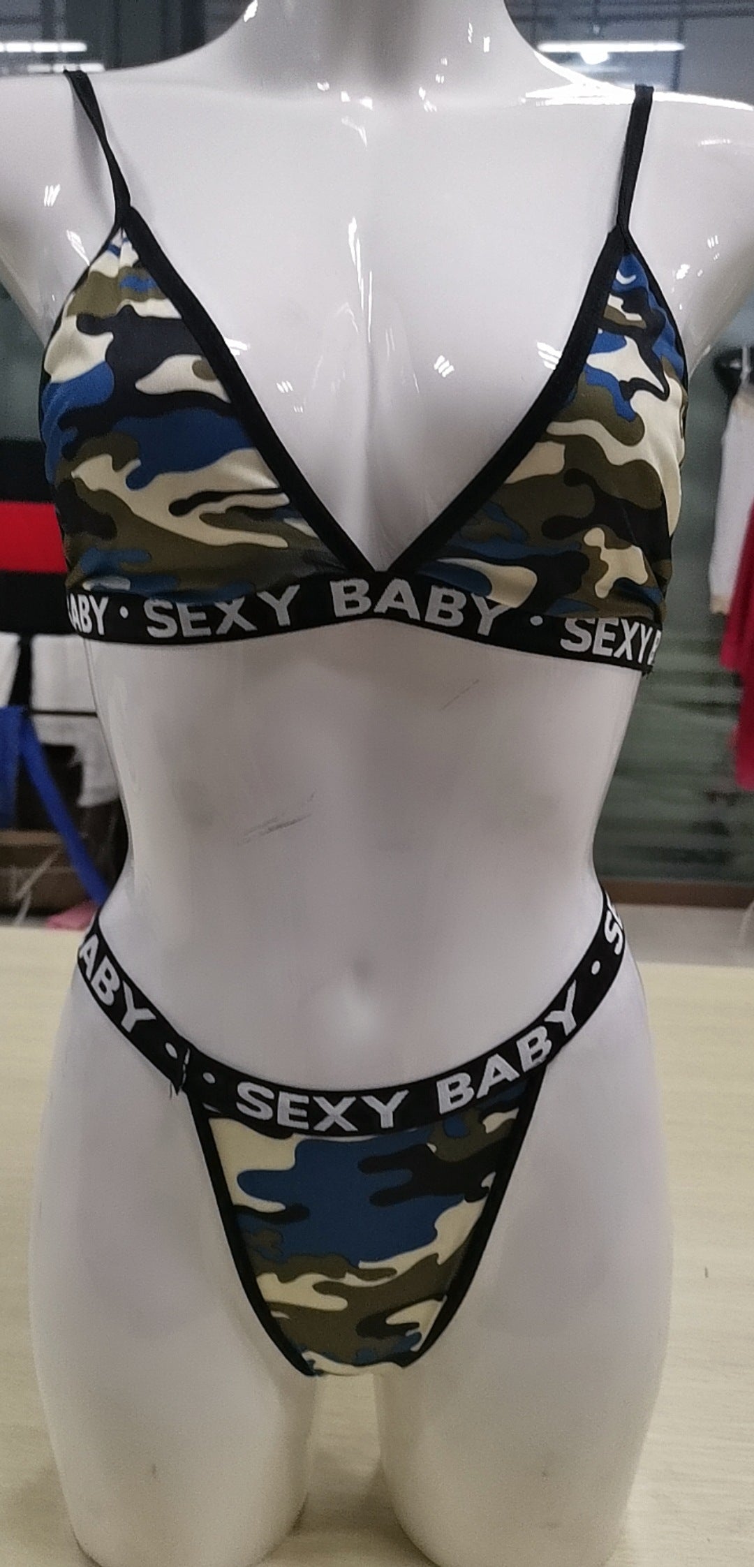 Nouveau modèle populaire avec bretelles spéciales, maillot de bain bikini deux pièces camouflage en tissu nylon multicolore