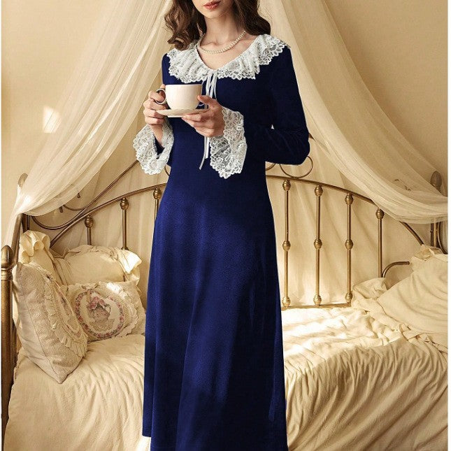 Nouvelle nuisette sexy en dentelle à bords blancs, coupe longue ajustée pour la maison