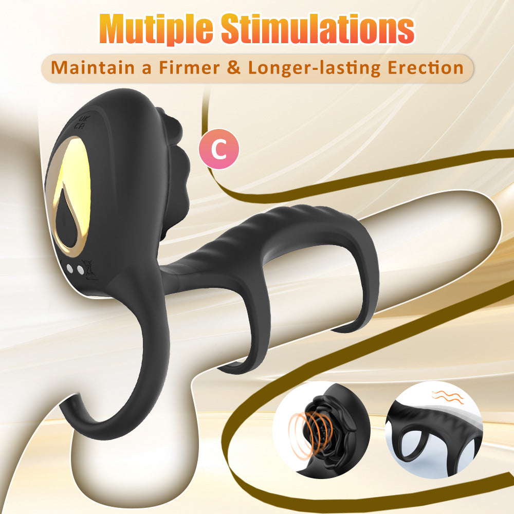 Anneau de pénis Rose Ring pour hommes, Anneau vibrant à trois sections, Anneau vibrant pour le plaisir unisexe, Anneau de verrouillage pour pénis